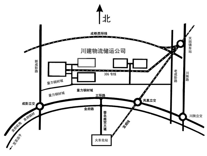 川建物流公司地理位置得天獨(dú)厚,地處成都市外北洞子口生資、建材、機(jī)電市場(chǎng)黃金地段,三環(huán)路成彭立交橋外200米,西緊靠新成彭公路;東臨國(guó)家鐵路寶成線、南通過成都市蓉北商貿(mào)大道僅4公里到達(dá)成都火車北站;北有成都鐵路西環(huán)線、成都繞城公路環(huán)繞其外;公司擁有5.8公里306鐵路專線與寶成鐵路在天回鎮(zhèn)接軌,自有GK1C、東方紅5型內(nèi)燃機(jī)車各一臺(tái),并有編組站線。四通八達(dá)方便快捷,是貨物儲(chǔ)存中轉(zhuǎn)的理想場(chǎng)地。川建物流儲(chǔ)運(yùn)公司機(jī)械化操作程度高,各類裝卸設(shè)備齊全,有8噸、16噸、50噸汽車吊各一臺(tái);有C7022、C5530、H3/36B等塔式起重機(jī)5臺(tái);10噸、20噸行車3臺(tái);3噸叉車2臺(tái)。本公司還有專業(yè)運(yùn)輸車隊(duì),各型載重汽車數(shù)十輛,并具有維修各種工程機(jī)械、汽柴油機(jī)動(dòng)車輛的能力和資格。