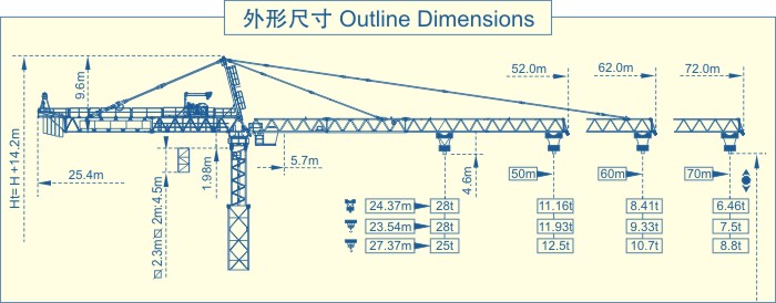 SCM-M600塔式起重機,是我公司吸收國外塔機技術(shù),自行設計制造的大型上回轉(zhuǎn)自升式塔式起重機。該機型設計新穎,起升、回轉(zhuǎn)、變幅、行走、頂升等機構(gòu)均采用國外技術(shù),性能先進可靠。 該機具有軌道行走式、固定附著式,多種使用類型。最大起重量20t。
